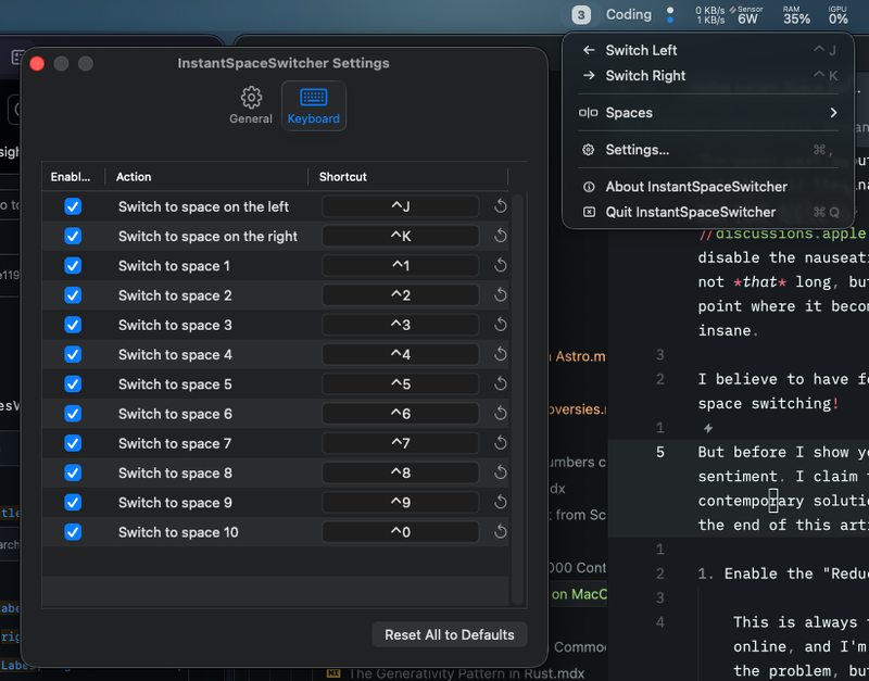 macOS에서 스페이스 전환할 때 그 느린 애니메이션, 드디어 없앨 수 있어요