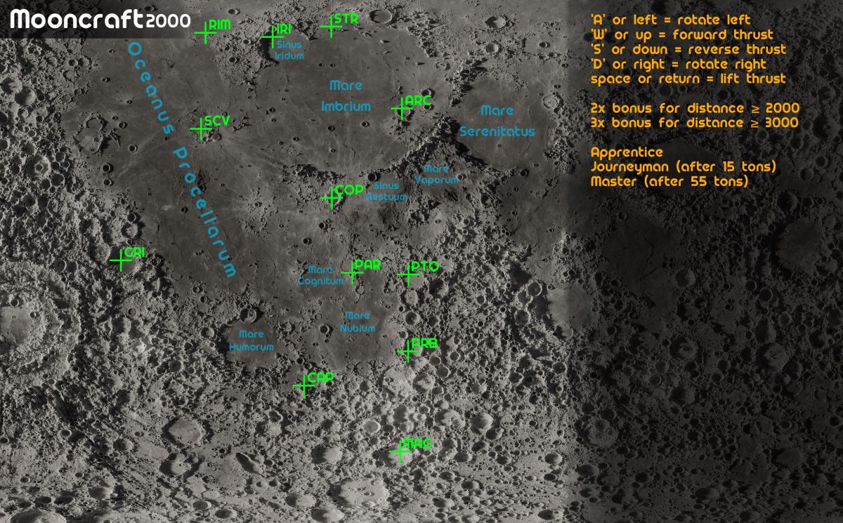 브라우저에서 레이캐스팅으로 달 표면을 탐험하는 게임, Mooncraft 2000